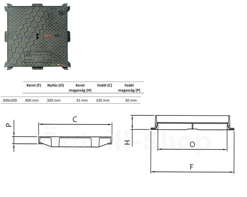 Fedél: 330 mm